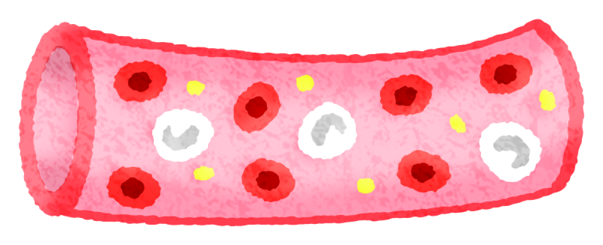 毛細血管は、動脈と静脈の間に位置する、直径5~10マイクロメートル(1マイクロメートルは1ミリメートルの1000分の1)という非常に細い血管です。その細さは、赤血球がやっと1個通れるほど。血管壁は、たった1層の内皮細胞でできており、非常に薄くできています。この薄さが、物質交換を効率的に行うための鍵となります。